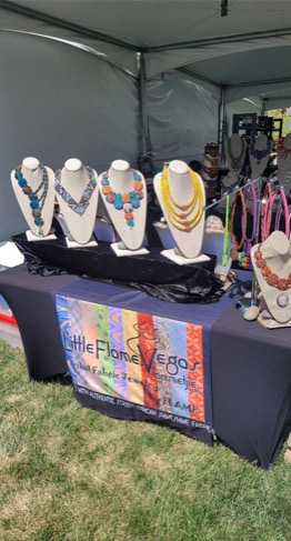 " Every Necklace, or Accessory I offer is Handcrafted from imported South African Fabric. They are all one of a kind.  Because of that, prints on each individual fabric may vary slightly, or a fabric may have been discontinued.  All efforts are taken to insure that you are getting the color scheme in the picture of the product you may be ordering."